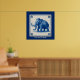 A humourous, monotone, blue woolly mammoth (mammathus primigenius) in the style of a Delft tile. Customise by adding your own text.