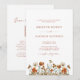 Delicate Autumn Wildflowers Simple Elegant QR Code RSVP Wedding Invitation... The front of our floral double-sided wedding invitation features terracotta serif and sans serif typography above a beautiful border of wildflowers in warm autumn colours of terracotta, rust, and leafy green. The back of the invitation displays your wedding website QR code as well as the website's URL itself allowing your invitees to easily RSVP online and view all of the details normally sent in a wedding packet. The example QR code and all example text (aside from the calligraphy elements) can be easily revised with your own information on the personalisation template.