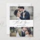 This delicate black calligraphy 3 photo collage thank you card is perfect for a modern wedding. The romantic minimalist design features lovely and elegant black typography on a white background with a clean and simple look. Personalise the back of the card with your names, and a thank you message. Alternatively, leave the thank you message template section blank to hand write a personalised note on each card after they arrive. These cards can be used for a wedding, bridal shower, or any special event.