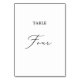 This delicate black calligraphy table four table number is perfect for a modern wedding. The romantic minimalist design features lovely and elegant black typography on a white background with a clean and simple look. The card prints on the front and back (double-sided). Other table numbers in the collection are sold separately.