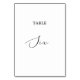 This delicate black calligraphy table six table number is perfect for a modern wedding. The romantic minimalist design features lovely and elegant black typography on a white background with a clean and simple look. The card prints on the front and back (double-sided). Other table numbers in the collection are sold separately.