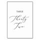 This delicate black calligraphy table thirty two table number is perfect for a modern wedding. The romantic minimalist design features lovely and elegant black typography on a white background with a clean and simple look. The card prints on the front and back (double-sided). Other table numbers in the collection are sold separately.