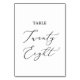This delicate black calligraphy table twenty eight table number is perfect for a modern wedding. The romantic minimalist design features lovely and elegant black typography on a white background with a clean and simple look. The card prints on the front and back (double-sided). Other table numbers in the collection are sold separately.