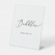 This delicate black calligraphy wedding bubbles pedestal sign is perfect for a modern wedding. The romantic minimalist design features lovely and elegant black typography on a white background with a clean and simple look.