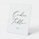 This delicate black calligraphy wedding cookie table pedestal sign is perfect for a modern wedding. The romantic minimalist design features lovely and elegant black typography on a white background with a clean and simple look.