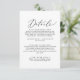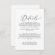 This delicate black DIY elegant wedding details card is perfect for a modern wedding. The romantic minimalist design features lovely and elegant black typography on a white background with a clean and simple look.