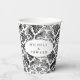 This design is a playful fusion of contemporary sensibility with vintage, old fashioned motifs, convincingly united by a grunge aesthetic. A beautifully intricate floral damask border fades in and out with a shifting, watercolor-inspired grunge in contrasting tones of black and white This design is sure to make a bold statement for the bride and groom or anniversary couple.