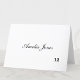 This wedding place card features a pre-printed guest name and a pre-printed table number, both in black text, with the text appearing on both sides of the place card once the card is folded in half. (The printed place card will arrive flat and so will need folding in half before use. The size before folding is approximately 5" height by 3.5" width, intended to be folded so approximately 2.5" by 3.5" after folding). Please use the online personalisation template to personalise the place card before adding it to the cart. (Please repeat the personalisation process for each card you wish to purchase, adding the card to the cart individually each time). A neatly-personalised place card for a stylish wedding or other special occasion.