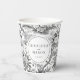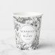 Elegant romantic black and white flowers chinoiserie porcelain inspired wedding paper cups with bride and grooms monogram.