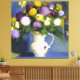 Delicate Blooms Wall Décor. Tranquillise your surroundings with this soothing stylised watercolour print. Delicate blues, yellows, and purples create a serene vase of flowers.