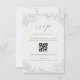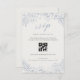 Wedding RSVP card with website and QR code featuring elegant blue floral wreath on neutral colour background.