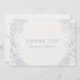 Wedding thank you cards featuring elegant blue floral wreath on neutral colour background.