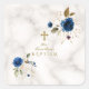 Delicate Blue Gold Flowers Gold Cross Baptism Square Sticker
