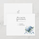 Here is a wedding reply card that exudes elegance and tranquillity, with its soft white backdrop offering a serene setting for your RSVP details. Delicate blue hydrangeas, nestled together with a soft blue ribbon, gracefully adorn the corner, adding a touch of natural beauty and warmth to the design. Creating a charming element that enhances the card's romantic and inviting feel. This rsvp gives of a touch of floral sophistication.