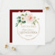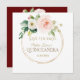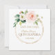 Elegant card design featuring gorgeous watercolour pink, blush, cream flowers bouquets, a faux gold glitter broken round frame, faux gold QUINCEAÑERA typography. Use Personalise tool to add your info. See, also, my Quinceañera & Sweet Sixteen Party Collection.