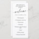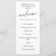 A minimalist birthday party program with elegant fonts and a delicate calligraphy script writing welcome across the top of the program. Add your program, the date, and the name of the person celebrating their birthday. Clean, simple, timeless, and elegant.