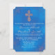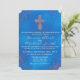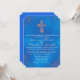 Subtle parchment paper style in soft blue hues.. Embellished with fine flourishing details around the edges and a detailed cross. Traditional religious wording, may also be customised to meet your exact style or colours.