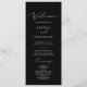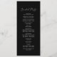 This delicate dark black calligraphy wedding program is perfect for a modern wedding. The romantic minimalist design features lovely and elegant white typography on a black background with a clean and simple look. Include the name of the bride and groom, the wedding date and location, thank you message, order of service, bridal party and an optional "in loving memory" memorial.