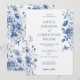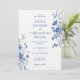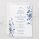 Delicate elegant wedding invitation in blue colours, vintage style, blue floral frame, butterflies, flowers