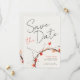 This one-of-a-kind wedding Save the Date invitation captures the essence of autumn with warm, romantic hues and delicate, natural details. Soft watercolor leaves in shades of orange gently adorn a graceful circular branch, evoking the beauty of a season when everything falls—some even fall in love. With its elegant, delicate design and minimalist charm, this invitation creates a timeless bond with nature, bringing a subtle yet sophisticated touch to any celebration.