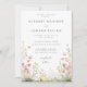This design features an illustration of delicate wildflowers and butterflies in shades of pink and green.