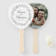 These fans were exactly as pictured. The quality is great. Perfect favor for a wedding!...I will make assembly a little easier by using a hot glue gun and finish them off with a ribbon. Beautifully printed. Crisp and clear text.