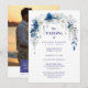 Delicate Floral & Botanical Arch Blue Shades Wedding Invitation Cards with Back Photo and QR Code.