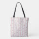 Delicate Floral Pattern Tote Bag - The romantic floral pattern featuring delicate pink and yellow blossoms with green leaves scattered across a background of pink and white stripes. The white stripes are edged with a decorative, lace-like border.