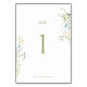 Delicate Floral Wedding Table Number