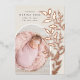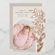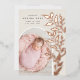 Chic and modern birth announcement features a single vertical/portrait orientated photo in an arched layout, with climbing vines of rose gold foil botanical leaves along the right side. Personalise with your baby's name, birth date, and stats, and add a personal message to the back, along with an additional photo.