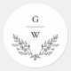 Delicate Foliage and Monogram Wedding Classic Round Sticker
