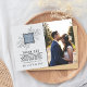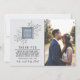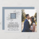 This thank you card features charm and simplicity, with the bride and grooms names centred atop a bed of delicate foliage, and a photo of the bride and groom. Change the colour of the square in the middle to suite any colour choice you have for your wedding! Please contact us if you would like help with customising this card.