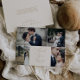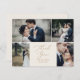 This delicate gold and cream 4 photo template thank you card is perfect for a modern wedding. The romantic minimalist design features lovely and elegant champagne golden yellow typography on an ivory cream background with a clean and simple look. Personalise the back of the card with your names, and a thank you message. Alternatively, leave the thank you message template section blank to hand write a personalised note on each card after they arrive. These cards can be used for a wedding, bridal shower, or any special event.