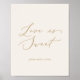 This delicate gold and cream love is sweet wedding poster is perfect for a modern wedding. The romantic minimalist design features lovely and elegant champagne golden yellow typography on an ivory cream background with a clean and simple look. Customise the wording to say anything you'd like!