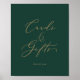 This delicate gold and green cards and gifts sign is perfect for a modern wedding or bridal shower. The romantic minimalist design features lovely and elegant champagne golden yellow typography on an emerald green background with a clean and simple look. The line of text at the bottom of the sign can be personalised with the date, the names of the bride and groom, or a short message like "Thank you". This sign can be used for a wedding or any event or party.