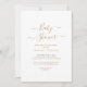 This delicate gold calligraphy baby shower invitation is perfect for a modern baby shower. The romantic minimalist design features lovely and elegant champagne golden yellow typography on a white background with a clean and simple look.