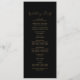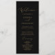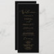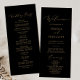 This delicate gold calligraphy black wedding party program is perfect for a modern wedding. The romantic minimalist design features lovely and elegant champagne golden yellow typography on a black background with a clean and simple look. Include the name of the bride and groom, the wedding date and location, thank you message, order of service, wedding party and an optional "in loving memory" memorial.