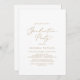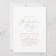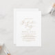 This delicate gold calligraphy graduation party invitation is perfect for a modern outdoor party. The romantic minimalist design features lovely and elegant champagne golden yellow typography on a white background with a clean and simple look.
