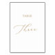 This delicate gold calligraphy table three table number is perfect for a modern wedding. The romantic minimalist design features lovely and elegant champagne golden yellow typography on a white background with a clean and simple look. The card prints on the front and back (double-sided). Other table numbers in the collection are sold separately.