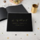 This delicate gold foil and black monogram back wedding guest book is perfect for a modern wedding. The romantic minimalist design features lovely and elegant luxurious pressed gold foil text on a dark black background.