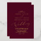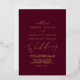 This delicate gold foil calligraphy burgundy wedding invitation card is perfect for a modern wedding. The romantic minimalist design features lovely and elegant luxury pressed gold foil typography with a clean and simple look.