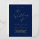 This delicate gold foil navy blue wedding foil invitation is perfect for a modern wedding. The romantic minimalist design features lovely and elegant luxury pressed gold foil typography with a clean and simple look.