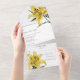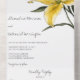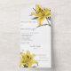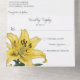 Step into elegance with our All-in-One wedding invitation featuring delicate golden yellow lilies, a symbol of purity and beauty. The simple yet striking design exudes timeless beauty, perfect for couples seeking a touch of sophistication for their wedding invitations. The All-in-One wedding invitations are both beautiful and practical by combining the wedding invitation with an easy to remove perforated RSVP postcard. They are also quick and easy to prepare for mailing. Simply address the invitation, fold the back flap and seal with the included clear stickers. Once your guests receive the pre-addressed invitation they simply tear off the perforated RSVP card and drop it in the mail.