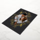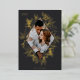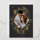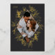 A modern and elegant holiday card that frames your vertical or portrait orientated photo in a beautifully detailed diamond shaped gold foil frame with holly leaves, berries, and winter leaves on a rich charcoal background. "JOY" appears at the top left, with your family name along the bottom. The year is tucked elegantly into the finely detailed white botanical frame. A delicate and refined nature inspired choice for your Christmas 2022 cards.