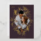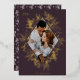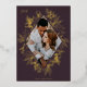A modern and elegant holiday card that frames your vertical or portrait orientated photo in a beautifully detailed diamond shaped gold foil frame with holly leaves, berries, and winter leaves on a rich plum background. "JOY" appears at the top left, with your family name along the bottom. The year is tucked elegantly into the finely detailed white botanical frame. A delicate and refined nature inspired choice for your Christmas 2022 cards.