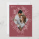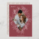 A modern and elegant holiday card that frames your vertical or portrait oriented photo in a beautifully detailed diamond shaped frame with holly leaves, berries, and winter leaves on a soft cranberry red background. "PEACE" appears at the top left, with your family name along the bottom. The year is tucked elegantly into the finely detailed white botanical frame. A delicate and refined nature inspired choice for your Christmas 2021 cards.