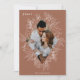 A modern and elegant holiday card that frames your vertical or portrait oriented photo in a beautifully detailed diamond shaped frame with holly leaves, berries, and winter leaves on a rich earth toned cinnamon brown background. "PEACE" appears at the top left, with your family name along the bottom. The year is tucked elegantly into the finely detailed white botanical frame. A delicate and refined nature inspired choice for your Christmas 2021 cards.