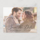 This delicate horizontal photo qr code save the date postcard is perfect for a modern wedding. The romantic minimalist design features lovely and elegant black typography on a light overlay photo background.