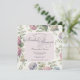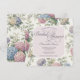 A bridal shower invitation featuring delicate hydrangea flowers in shades of dusty rose, light purple, and blue.