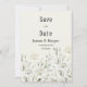 A delicate ivory and white floral arrangement graces this elegant wedding Save the Date invitation, symbolising purity and timeless love. Soft petals and subtle greenery create a romantic, minimalist aesthetic. Perfect for classic or garden-themed weddings, this design exudes charm and sophistication. Let your special day begin with beauty and grace. Customise this design with your message and personalised information. All designs are printed.